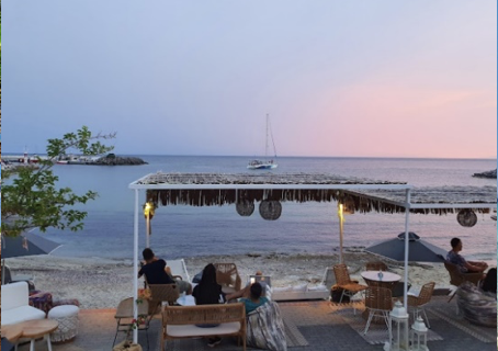 Пред самата Вила се наоѓа и еден од најубавите beach барови во Неа Скиони ISLAND BEACH BAR, како и многу познати таверни кои се наоѓаат веднаш до Вилата.